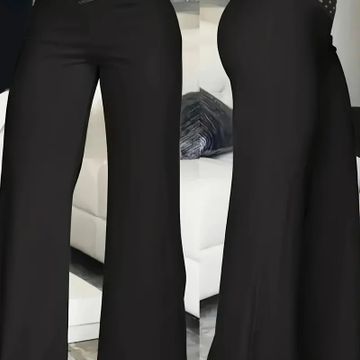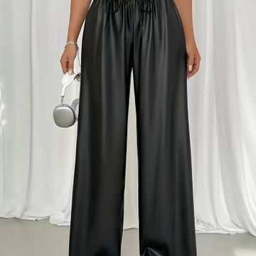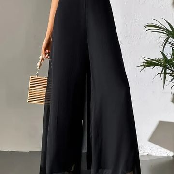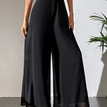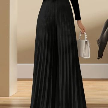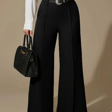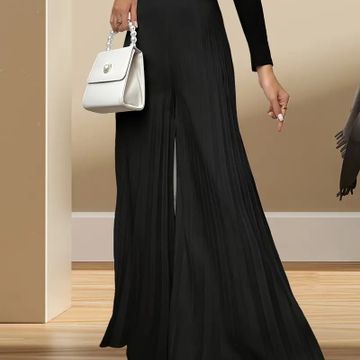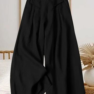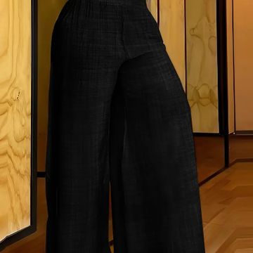 Women's Elegant Black Wide-Leg Pants - High Waist, Flowy Polyester