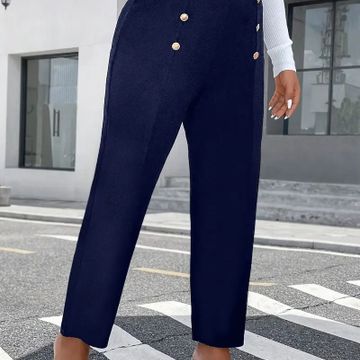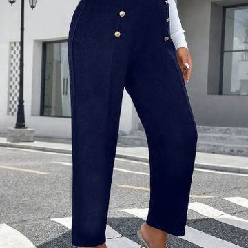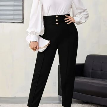 Elegant Plus Size Tapered Pants for Women - High Waist, Button