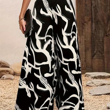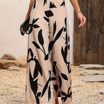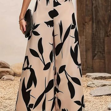Leaves Print Wide Leg Pants