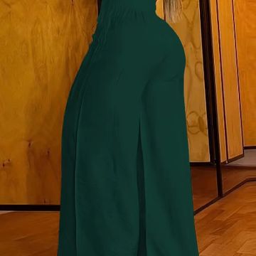 Women'S Solid Color Wide Leg Pants, Polyester Elastane Blend