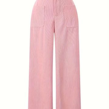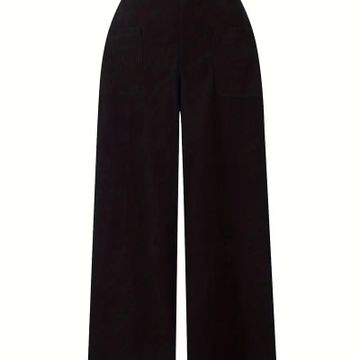 Plus Size Solid Corduroy Pants, Casual High Waist Wide Leg Pocket