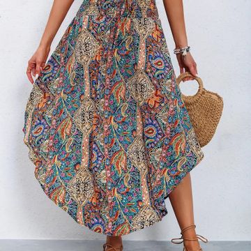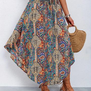 Paisley Print High Waist Skirt, Casual Lace Up Skirt For Spring
