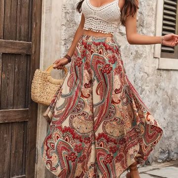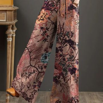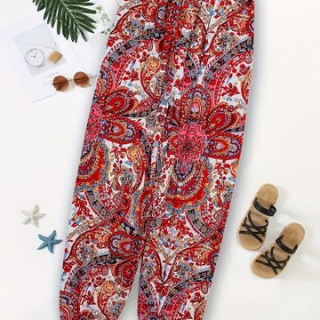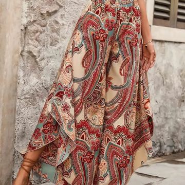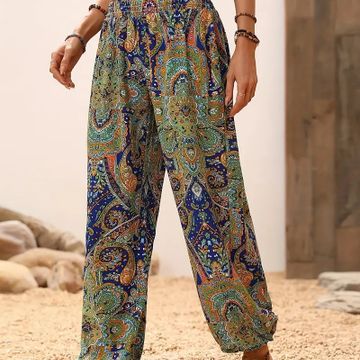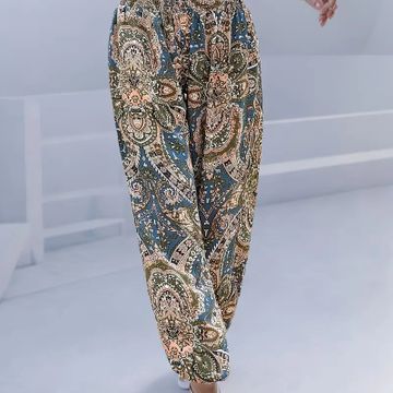 Paisley Print Wide Leg Pants, Casual