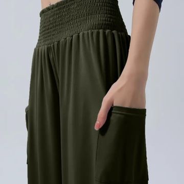 Sports and leisure high-waisted pants, wide-leg pants, nine-inch pants