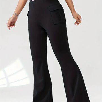 Solid Color Flare Leg Pants, Casual & Versatile High Waist Flap Pockets