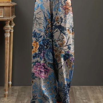 Floral Print Wide Leg Pants, Casual Elastic Waist Loose Pants for Spring