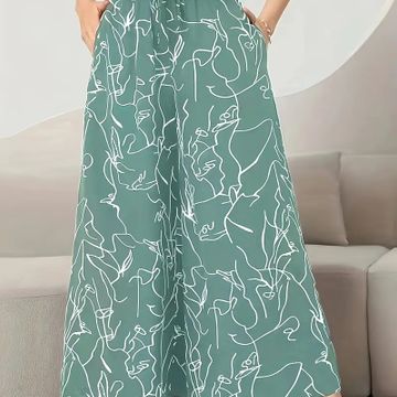 Allover Print Wide Leg Pants, Casual Loose Pants For Spring