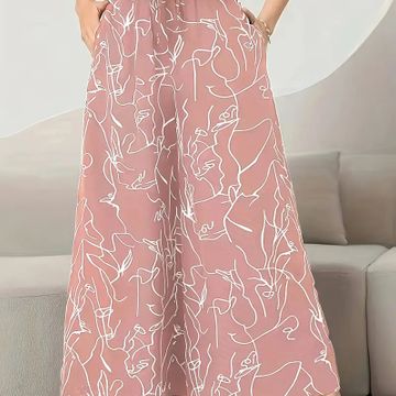 Allover Print Wide Leg Petal Pants, Casual Loose Pants For Spring