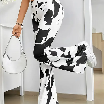 Vibrant Cow Print Flare Leg Pants