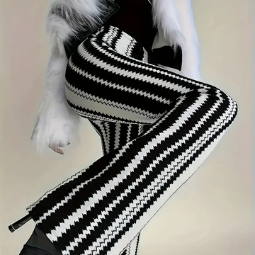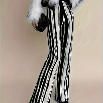 Black and White Striped Flare Pants for Women