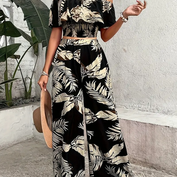 Off-Shoulder Top and Wide-Leg Pants Set for Women