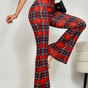 Vintage Chic Plaid Flare Leg Pants