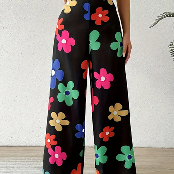 Floral Print Wide Leg Pants
