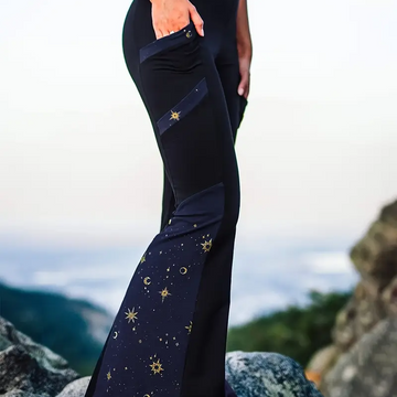 Moon Print Pants, Casual Flared Leg With Pockets