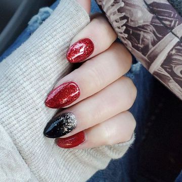 Red Ombre Fake Nails Medium Length Glue On Nails False Nails with Design Stick On Nails in 15 Sizes 30 Nail Kit with Glue for Holiday New Year Gift