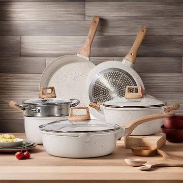 CAROTE Pots and Pans Set Nonstick, White Granite Induction Kitchen Cookware Sets
