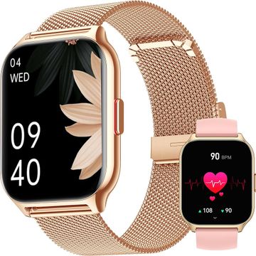 ZOSKVEE Reloj Inteligente Mujer, 2'' Grande Pantalla Smartwatch con Llamadas, Presión Arterial, Asistente de Voz, Sueño, 100+ Modos, Ritmo Cardíaco, DIY Esferas, Regalo