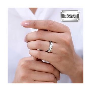 Shop LC 925 Sterling Silver Fidget Ring Spinner Ring Moon Star Anxiety Ring for Women Men Platinum Plated Jewelry Birthday Gifts