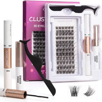 Lash Extension Kit 72 Cluster Individual Lashes Natural with Lash Bond and Seal Super Hold Eyelash Tweezers Lash Glue Remover Easy to Remove Lash Clusters Kit DIY at Home 10-16mm C/D Curl - OP01