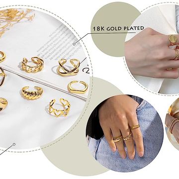 MOROYA 10PCS Gold Dome Chunky Rings for Women 18K Gold Plated Braided Twisted Round Signet Rings Adjustable Open Ring Band Statement Jewelry Size 7-9