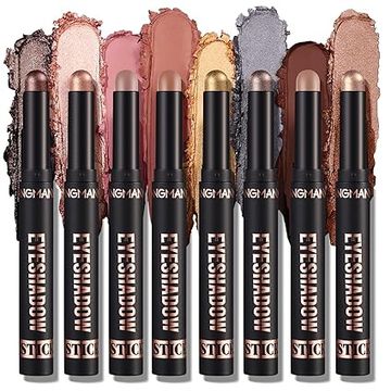LANGMANNI Eyeshadow Stick,8 PCS Soft Smooth Cream Eyeshadow Stick Gift Set,Matte Earth Color+Bright Metal Color Contour Stick,Waterproof & Long-Lasting Eyeshadow Stick (#B)