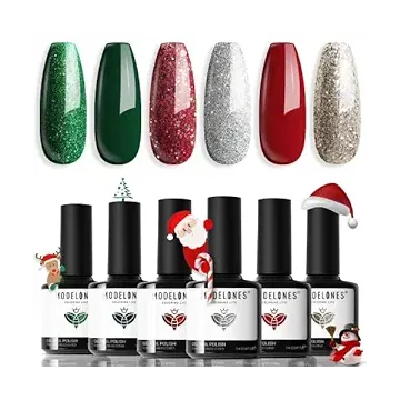 modelones Christmas Gel Nail Polish Set 6 Colors, Winter Sparkle Dark Green Red Glitter Silver Champagne Rose Gold New Year Shades Shopping Gel Polish Kit Fall Soak Off Nail Art Manicure Home Gifts • 2024 New Christmas Gel Nail Polish Kit】6 of the mos