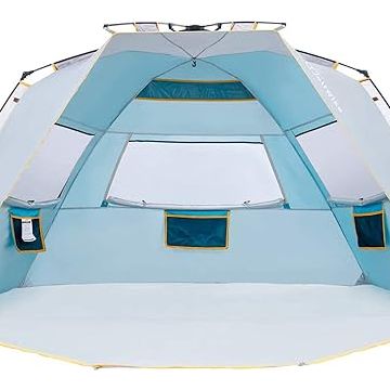 WolfWise 4-5 Person Easy Up Beach Tent UPF 50+ Instant Sun Shelter Canopy Outdoor Sport Umbrella Sun Shade Tent with Extended Zippered Porch Portable, Blue