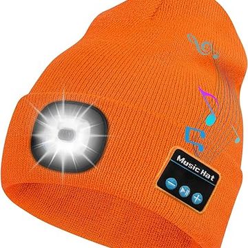 Bosttor Bluetooth Beanie Cap Torch, LED Light Up Beanie Music Torch Hat, Beanie with Headphones and Built-in Stereo Speakers & Mic, Lighted Cap for Camping Running, Unisex Gifts for Men