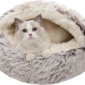 Calming Dog Beds & Cat Cave Bed with Hooded Cover,Removable