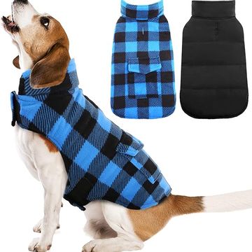 Kuoser Dog Winter Coat, Windproof Dog Fleece Jacket British Style Plaid Cold Weather Dog Vest Coats, Reversible Cozy Warm Dog Clothes Pet Apparel for Small Dogs XS