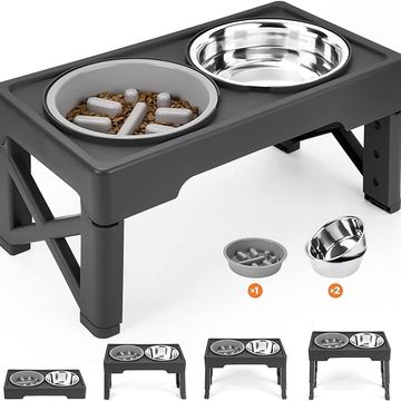 Elevated Dog Bowls with Slow Feeder, 4 Adjustable Heights Raised Dog Bowl Stand with Two 1.3L Stainless Steel Food & Water Bowls, Adjusts to 2.8”, 8.6”, 10.2”, 11.8” for Large Medium, Small Dog & Cats