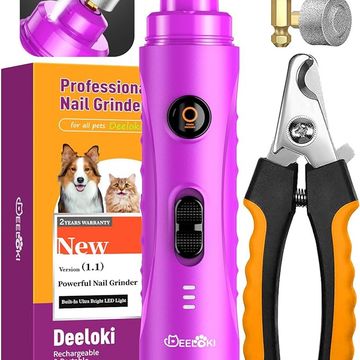 DEELOKI Dog Nail Grinder with LED Light Upgraded 2 Speeds Painless Pet Dog Nail Trimmers and Clipper Super Quiet Best Cat Dog Nail Clipper Kit for Large Small Dogs Pets Cats Breed Paws Quick Grooming