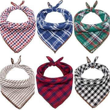 Remifa Dog Bandanas - 6PCS Birthday Gift Washable Green Black Blue Red Square Plaid Printing Christmas Dog Bib Double Reversible Kerchief Scarf Adjustable Accessories for Small to Large Dog Puppy Cat