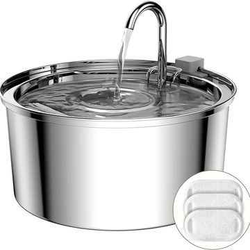 Tomxcute Cat Water Fountain, 3.2L108oz Automatic Stainless Steel Pet Fountain Dog Water Dispenser, Ultra-Quiet Pump and 3 Replacement Filters & for Cats, Dogs, Multiple Pets