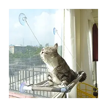 Cat Window Perch Durable Cat Hammock Seat for Indoor Cats Reversible Mat Use Year-Around Foldable Cat Bed Providing All-Around Sunbath Saving Space Washable Holds Up to 40 lbs (M-21x12x9-Beige)