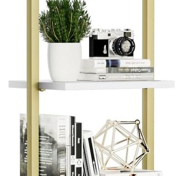 Ladder Shelf, 5 Tier, Wall Mount Bookshelf, White and Gold A23