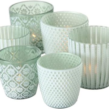 6 x Windlicht Patty grün Höhe 7-9 cm