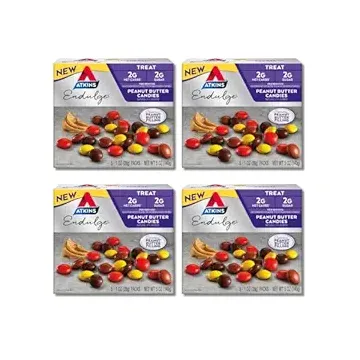 Atkins Endulge Treat, Peanut Butter Candies, 2g Net Carbs, 2g Sugar, Creamy Peanut Butter Filling, Low Carb, Low Sugar, 4 Packs (5 Count Each)