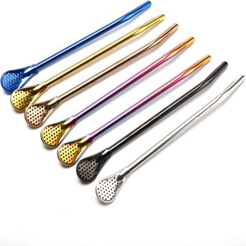 Reusable Straws Spoon for Yerba Mate Stainless Steel Straw Spoon Filter Strainers for Loose Tea, Coffee Stirrers, Smoothie Slushy Straws, 9 Pcs 6 Colors