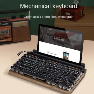 Mechanical Keyboard Retro Typewriter Steampunk Wireless Bluetooth Dual-mode Mechanical Keyboard Computer Tablet IPad Mobile Phone Green Shaft