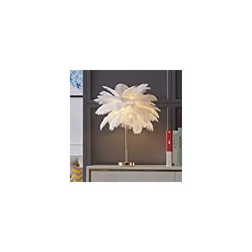 MOLIH Feather Table Lamp Modern LED Ostrich feather Desk Night Light