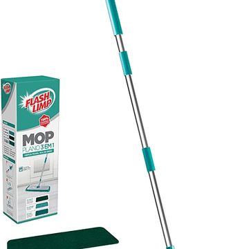 Mop Plano 3 EM 1, Limpeza Pesada, Úmida e Tira Pó, MOP0617, Flash Limp, Inox e verde