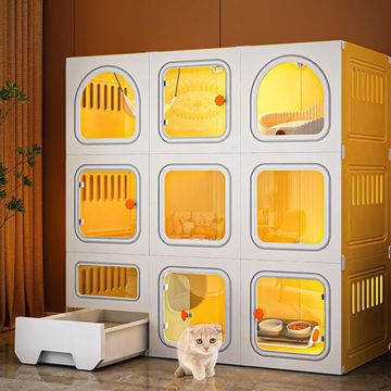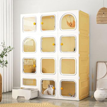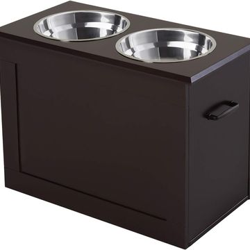 Station Meuble de Rangement pour Animaux de Compagnie avec 2 Gamelles Chiens