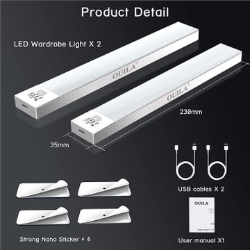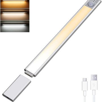 LED Lampe de Placard Rechargeable Batterie Amovible, Lampe Detecteur de Mouvement Interieur, 3 Couleurs d'éclairage