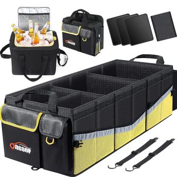Rangement Coffre de Voiture Organisateur Coffre Voiture 55L en 600D Support 30KG Etanche Multi-compartiments Pliable avec Couvercle Pliable