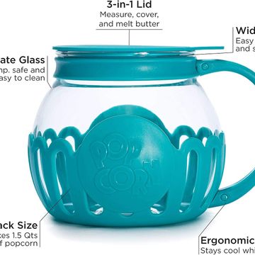 Micro-pop popcorn breveté pour micro-ondes, verre borosilicate, couvercle 3 en 1,