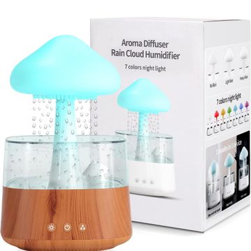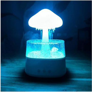 Veilleuse fontaine diffuseur d’huiles essentielles micro-humidificateur avec nuage de pluie et son de gouttes d’eau