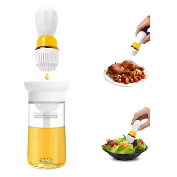 Flacon distributeur d'huile avec brosse Récipient de stockage et distributeur d'huile et pinceau en silicone - bouteille en verre mesureur