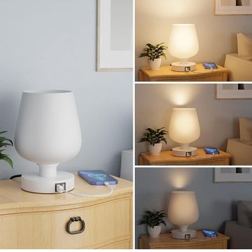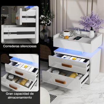 Table de Chevet Avec Station de Charge, 16 Couleurs LED Réglable Table de Chevet, Table de Nuit Avec Prise et Port USB, Table de Chevet Intelligente Avec 2 Tiroirs Blan