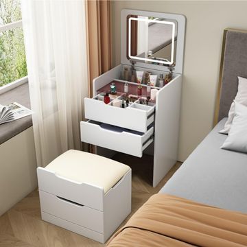 Coiffeuse avec Miroir Led et Tabouret Intégré